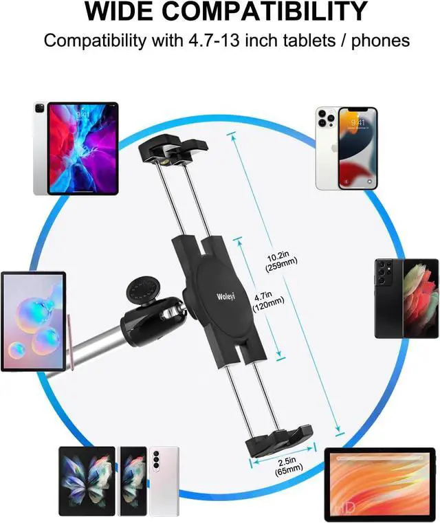 Broad compatibilityThis universal seat bolt tablet holder for car, the adjustable side clamps extend from 4.7 in to 10.2 in, compatible with all 4 - 13 inch smartphones and tablets, such as new 2024 iPad Pro 13-in. / 12.9 / 11/ 10.5 / 9.7, iPad Air 6/ 5/ 4, iPad Mini 6/ 5, iPad 10th Generation; Galaxy Tab S, Galaxy Tab A; Fire HD; Surface Pro, Surface Go; Nexus Tablets; Android Tablet PC series; iPhone 16 Pro Max, 15, 14, 13, 12, 11, Xs, Galaxy S24, e-Readers etc more tablets and smartphones with or without a case or sleeve.