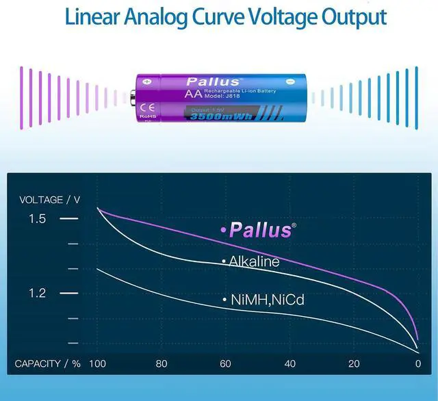 What You Get: 12-pack Pallus 1.5 v lithium rechargeable AA batteries, 1x 4-Solt USB-C ultra fast charger, 1x Type-C charging cable, 1x user guide, 3x batteries storage case. Customer service of 60-days money back and 12 months warranty
