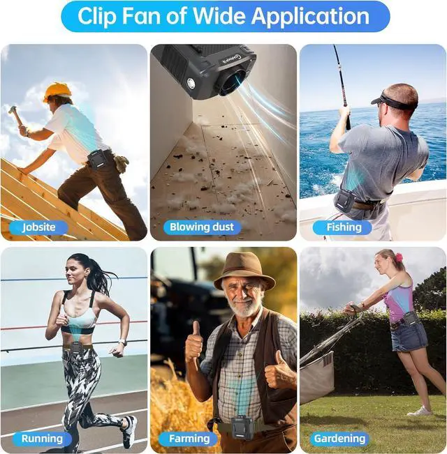 Waist Belt Fan with Versatile Application: Constructed from durable plastic and silicone materials, it minimizes the risk of accidental falls, making it ideal for prolonged outdoor use. With its wide range of applications, this portable waist fan provides cooling relief in various activities such as work, gardening, farming, hiking, fishing, camping, cycling, traveling, or climbing, offering comfort from within during your adventures.