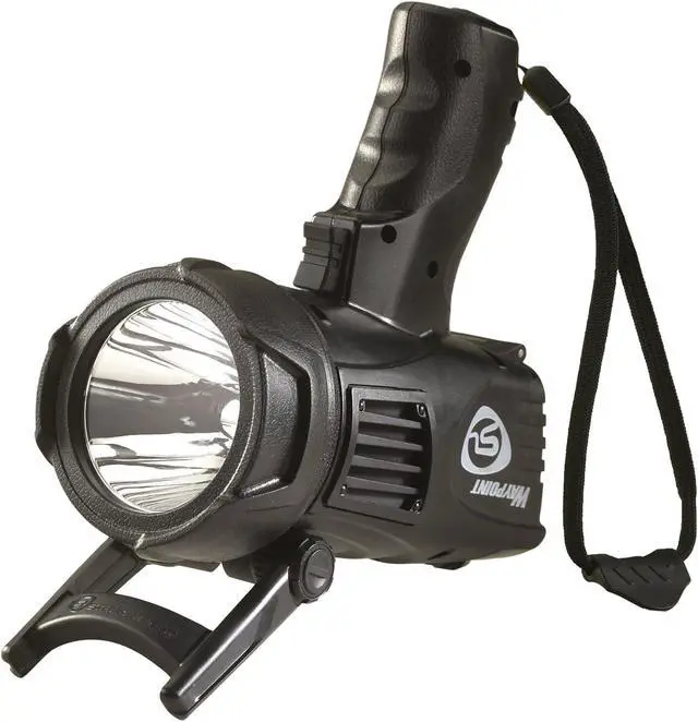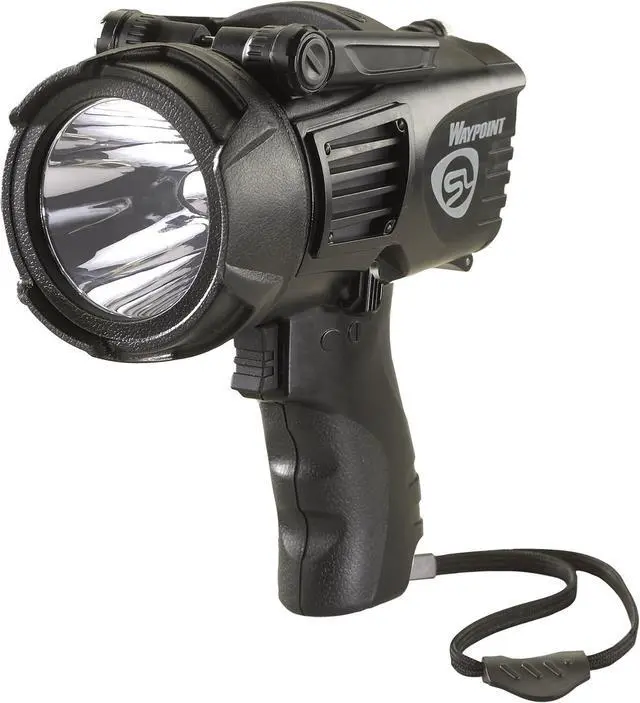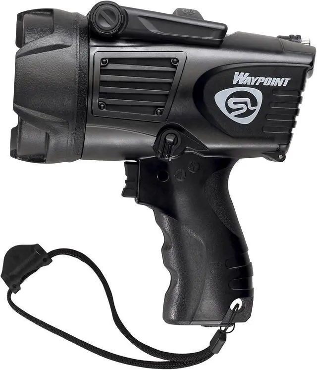 Handheld and powerful, the Streamlight Waypoint pistol-grip spotlight offers high and low intensity modes, emergency signal mode and the latest in power LED technology. The spotlight provides portability and long runtime using 4 "C" sized alkaline batteries or endless runtime with the 12VDC power cord; making the Waypoint the perfect choice for a variety of applications. Weight balanced design virtually eliminates user hand fatigue.