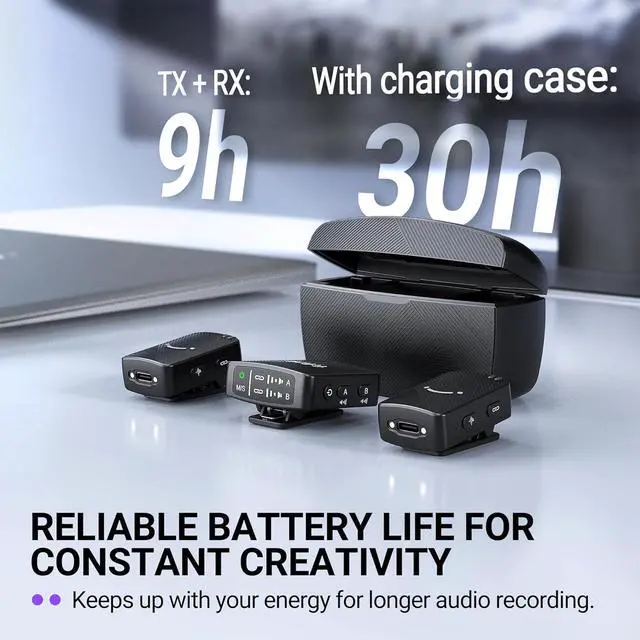 [Long-Lasting Battery, Reliable Range] The charging case can fully charge podcast lapel mic kit nearly 3 times with up to 30 hours of using. Even better, the 2 packs lavalier camera mic ensures you will not stop filming or losing sound midway during key moments due to the option to charge while dual-channel recording. Its 164-foot working range meet the basic usage distance and let you comfortably capture content from a distance to set up wide under the scenic shots.