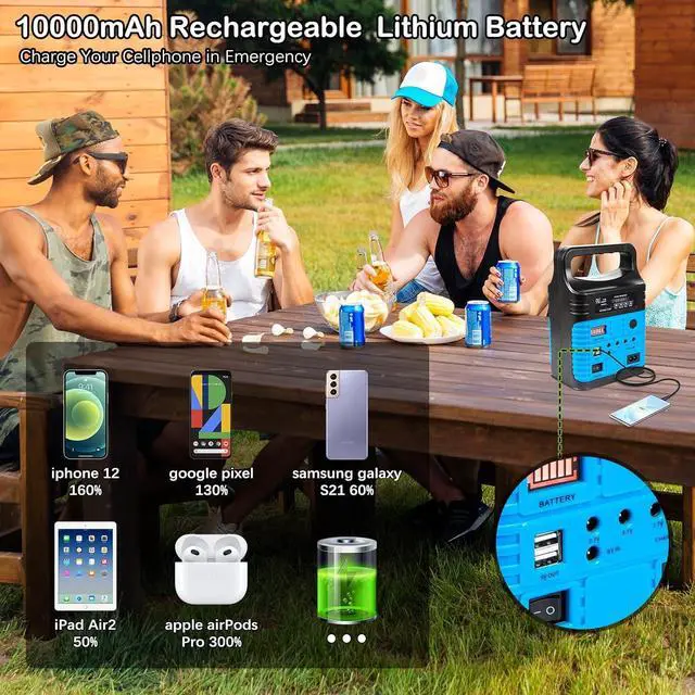 SOLAR & WALL RECHARGEABLE: This power generator offers charging flexibility with three convenient methods: recharge via the included solar panel(8-15 hrs full charge in direct sunlight), wall outlet (6-8 hrs), or USB car outlet when on the road. Take the outdoor generators with you on-the-go and never worry about power shortage. (NOTE: For best battery longevity, recharge at least bi-weekly if not in use, maintaining a 60-80% charge level. Avoid using solely as an emergency backup. )