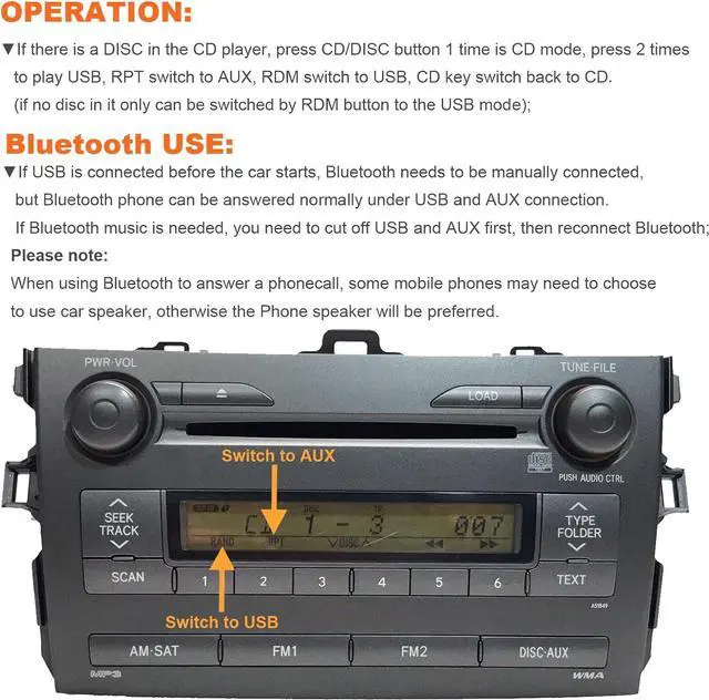 Not work with following radio model: 52867 (Vios), Aygo, 58805 (2003 RAV4 ), 56018, 58813, T18303, B9010, B9004 (2007 RAV4), RAV4 with a factory navigation, TNS Travel 700, W58816, T18303, W13807 / W13081 / W13086 (Auris), W53904 (Panasonic, Avensis 2005-2007), W58832, 36458, AD1812(Delphi on 2010-2011 Tundra / Sequoia), AD6900 (Delphi on 2000-2004 Avalon), and other ADxxxx radios