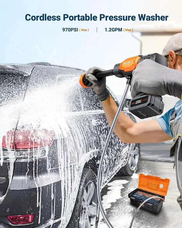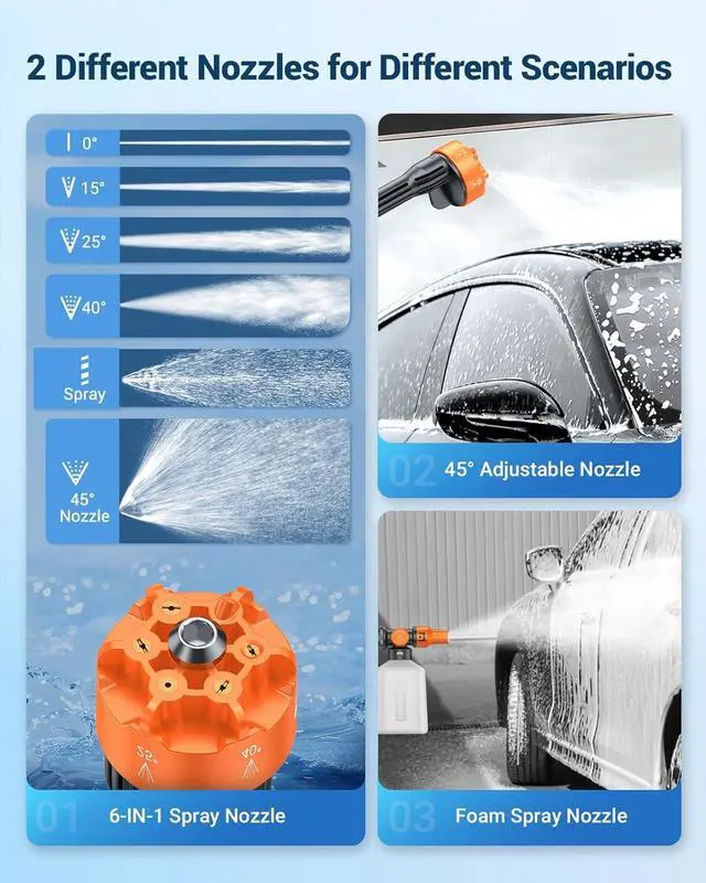EASY ASSEMBLY AND PERFECT GIFTThe installation of this cordless pressure washer kit is simple and fast, everyone can use it easily. It is also a unique gift, whether it's Mother's Day, Father's Day, birthdays, graduation ceremonies, or other special occasions, our car wash machine can bring unique and thoughtful surprises to your family, friends, and loved ones.