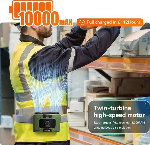 Waist Fan, Personal Fan Portable USB Rechargeable Waist Clip Hand Free 20000mAh, 6-32hours Wearable For Outdoor Travel Power Bank