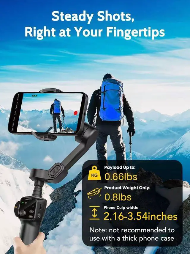Upgraded OLED full screen: Get instant access to the detailsfield of view through, stabilizer status, function parameters, Bluetooth power, and more through OLED screen. Smart V8 phone gimbal stabilizer provides up to 8 hours of continuous shooting after just 2 hours of charging. Its palm-sized design offers wide compatibility, supporting almost all iPhones and Android phones up to 7 inches (folding screen is not available). Any problem please message us on.