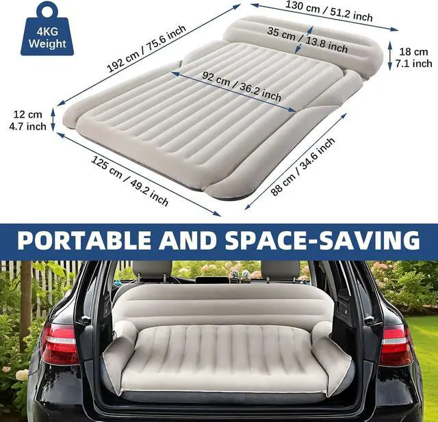 What You Get 1 x SUV Air Mattress, 2 x Pillows, 1 x Air Pump, 1 x Carry Bag, 1 x Instruction Manual, 2 x Repair Patches. Before purchasing, measure your SUV size and carefully compare it with the detailed size drawing for a perfect fit