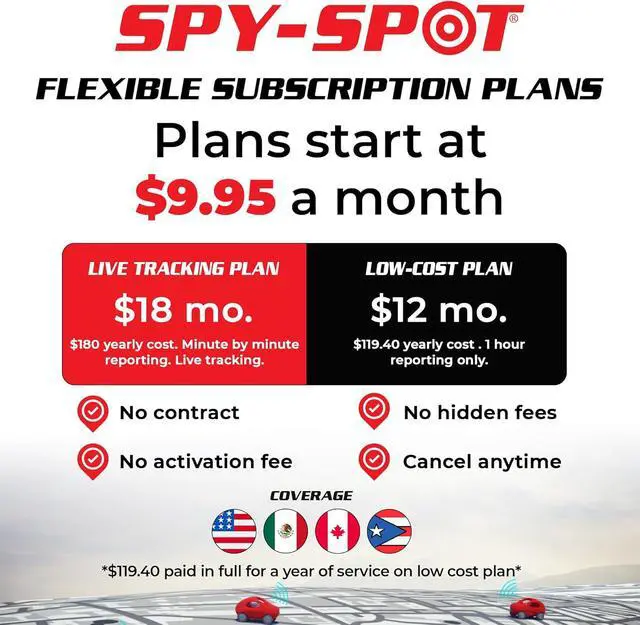 INTERNATIONAL COVERAGE: Our tracking system covers the United States, Canada, Puerto Rico, and Mexico. No contract required.