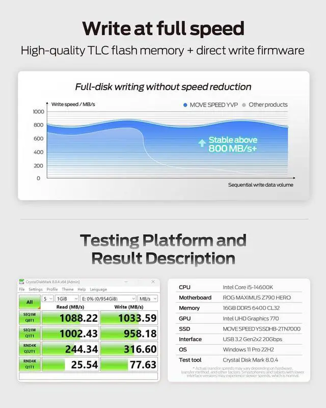 SSD Level Chip & High-Quality Metal Case: MOVE SPEED USB 3.2 Gen2 pendrive is made of advanced SSD level chip technology and high-quality zinc alloy materials. SATA Solid-state drives are now condensed into the form of USB C drive. It only takes 1 seconds to transmit 1GB file, amazing speed experience. What's more, it has excellent waterproof, dust-proof, anti-drop, high temperature and anti-magnetic properties.