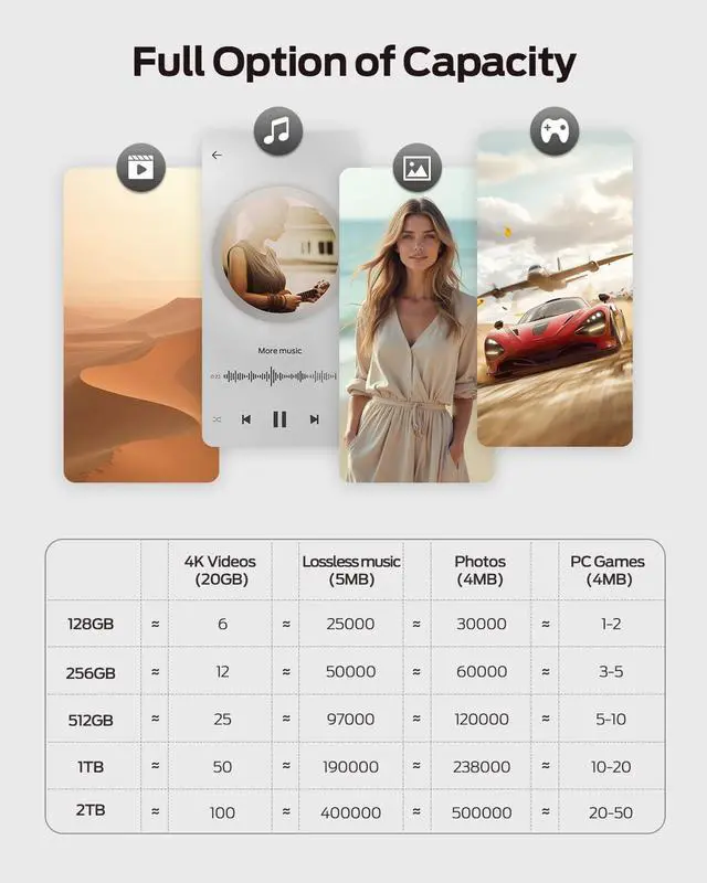Wide Compatibility and Easy to Use: This USB 3.2 Gen2 usb ssd drive is universal for Android USB-C Phone, iPhone 15, iPhone 16 Series, desktop, laptop, car audio system, smart TV and More. Real Plug and Play, extremely simple to use. Plugs directly into your android phone or computer, no cable and software required. The usb c drive comes with a keychain leather case for easy portability and storage. Come and use this usb ssd drive to transfer files for you!