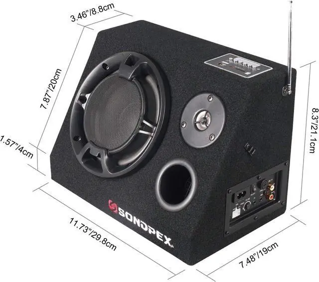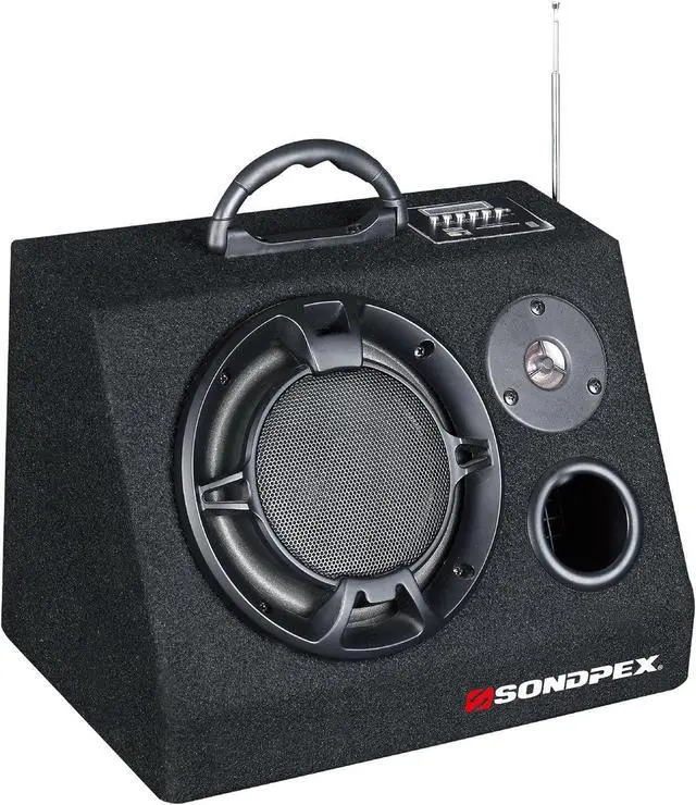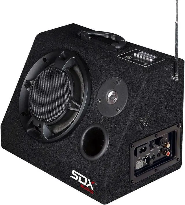 This speaker system has a built-in amplifier, woofer, and tweeter to deliver up to 200 watts of maximum output power.