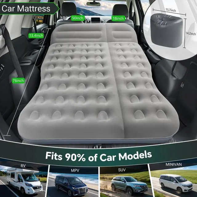 COMFORT & SUPPORT-Our inflatable car mattress boasts a 6-inch thick design with an advanced air-coil-beam structure, supporting up to 660 lbs for superior stability and body alignment. Customize the firmness with the included pump to find your perfect comfort levelideal for relieving back pain and pressure points after long drives or workdays. Wake up refreshed