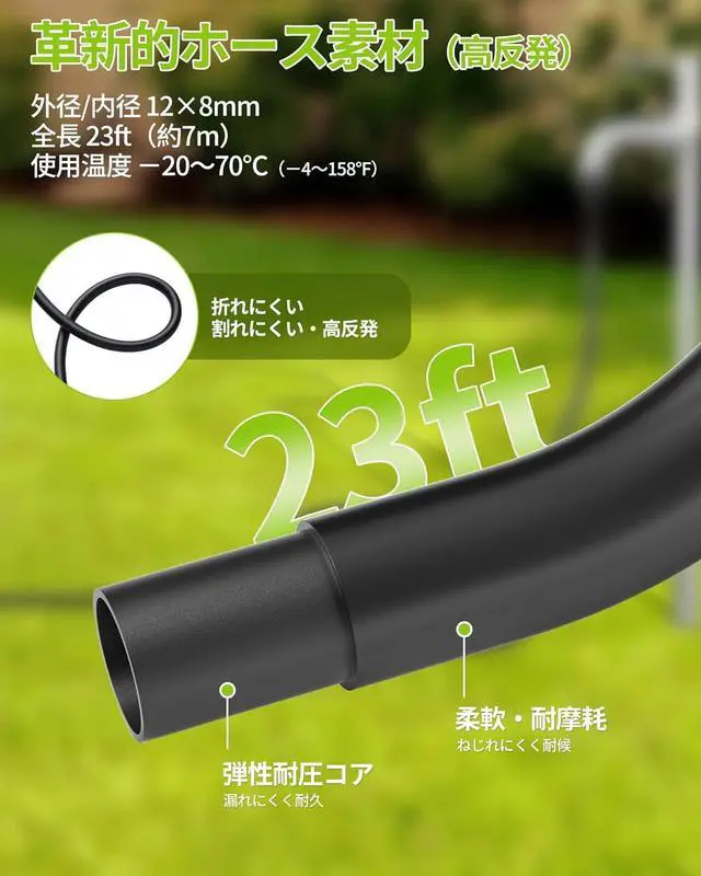 [Draw Water Anywhere with 23ft Extra-Long Hose] Our car washer features a 23ft extra-long hose, ensuring a greater working distance than other models. The weighted filter basket makes it easy to draw water from pools or rivers while removing impurities like leaves. The bottle connector allows direct water intake from bottles, and the faucet connector attaches to any tap.