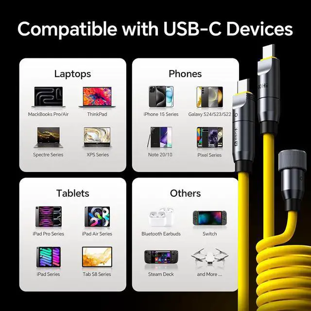 Max 240W & PD 3.1 Fast Charging. With USB PD 3.1 fast charging protocol, this USB-C cable supports 5A high current and max 240W output to charge your device at high speed, while the built-in E-marker chip can ligently match the required current to improve charging efficiency.