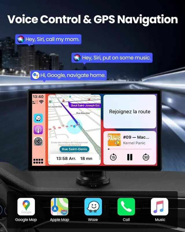 Car Stereo]: Carplay Screen for Car supports IOS and Android phone mirroring. Carplay/Android Auto or Bluetooth connection easily syncs with the car stereo. Use the provided AUX cable to connect to the car's AUX input jack for even louder, lossless audio