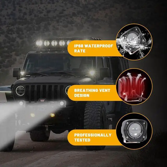 BETTER CONSTRUCTION - 4 inch LED light cubes are your ultimate trail companions. Featuring a die-cast aluminum body, 304 stainless steel bracket, hardened PC lens, and IP68 waterproof rating, they ensure reliable illumination in any weather. The robust design resists scratches, repels dirt, and efficiently dissipates heat