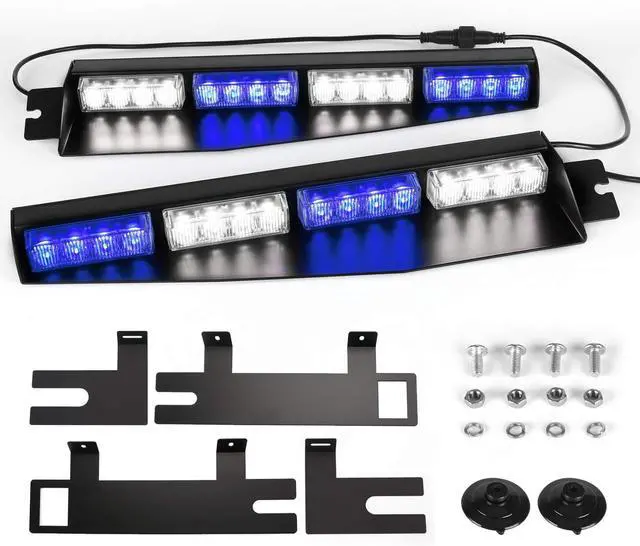This visor strobe light bar is ideal for emergency vehicles, law enforcement cars, fire dept POV, EMT first responder, volunteer services, EMS, plow trucks, construction vehicles, safety caution, etc, to warn of potential hazards.