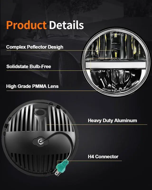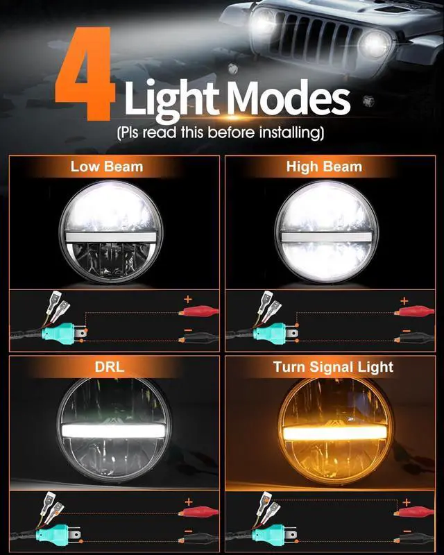 Wide Application: This h6024 led headlight compatible with jeep Wrangler JK 2 Door 2007-2015; Compatible with jeep Wrangler TJ 1997-2006; Compatible with jeep Wrangler CJ-7 1976-1986; Compatible with jeep Wrangler TJ Unlimited/LJ 2003-2006; Compatible with jeep Wrangler JK 4 Door Unlimited 2007-2015; Compatible with CJ-8 Scrambler 1981-1985; Compatible with Mazda Miata; Compatible with Chevy. Pls check the size of your vehicle bucket