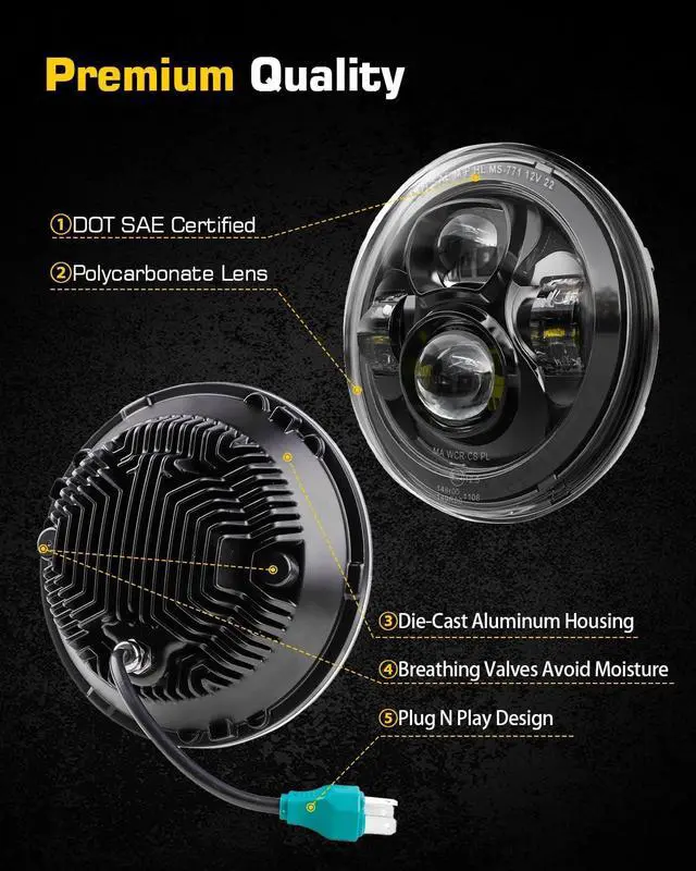 Rugged Construction: Our headlight assembly features a solid die-cast aluminum housing and anti-scratch polycarbonate Lens to provide maximum protection from minor abrasions
