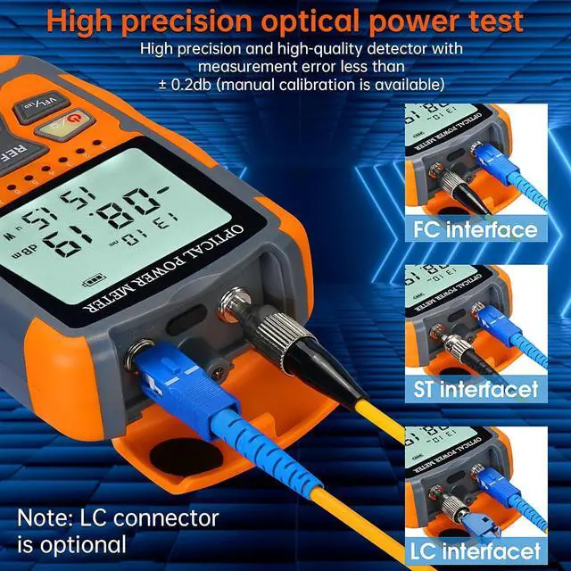 • [Multifunction Fiber Optic Tools] 4 in 1 function includes optical power meter, 10Km Visual Fault Locator, RJ45 network test and LED lighting. Using 2 AAA batteries (not included) .