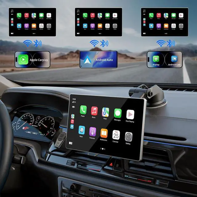 Online Maps and Real-Time GPSThe 9-inch portable carplay screen provides precise real-time location and GPS navigation without delay. Allow you to use popular map applications such as Google Maps and Waze to provide real-time route recommendations for traffic congestion and lane changes. This GPS navigation system can use the latest smartphone GPS data for real-time navigation without frequent updates.