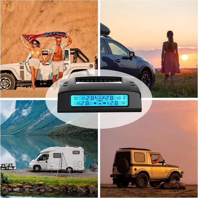 [Automatic Backlight and Real-time Monitoring]: Tymate tire pressure monitoring system M7-3-6 has a smart LCD screen, which can automatically display backlight in low light or strong light environment, and display data clearly. Real-time monitoring and real-time display of data, the data of 6 sensors are displayed at the same time, allowing the driver to know the tire pressure and temperature of all tires at any time