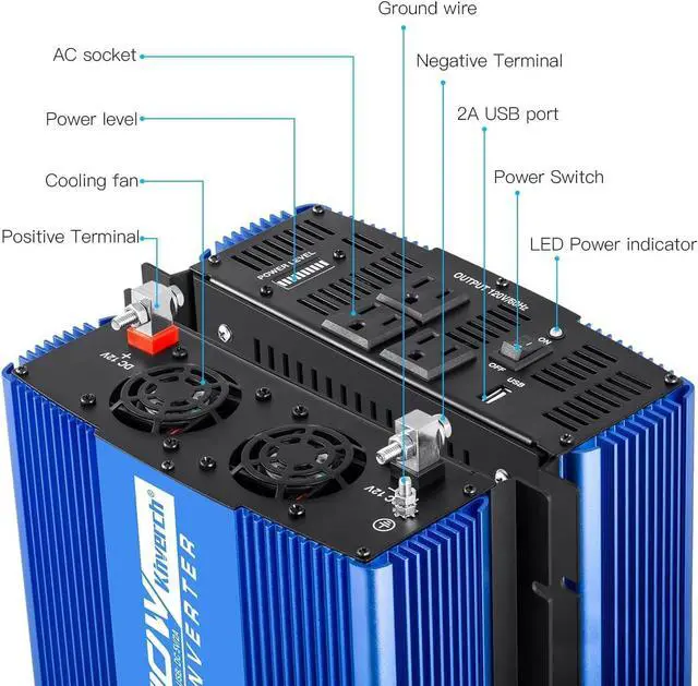 [USER-FRIENDLY DESIGN ] The inverter's smart cooling fans only works when temperature of heatsink is over 104 which not only ensures you a ultra silent using experience but also keeps the inverter running safely and effectively at a low temperature.