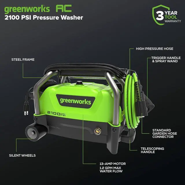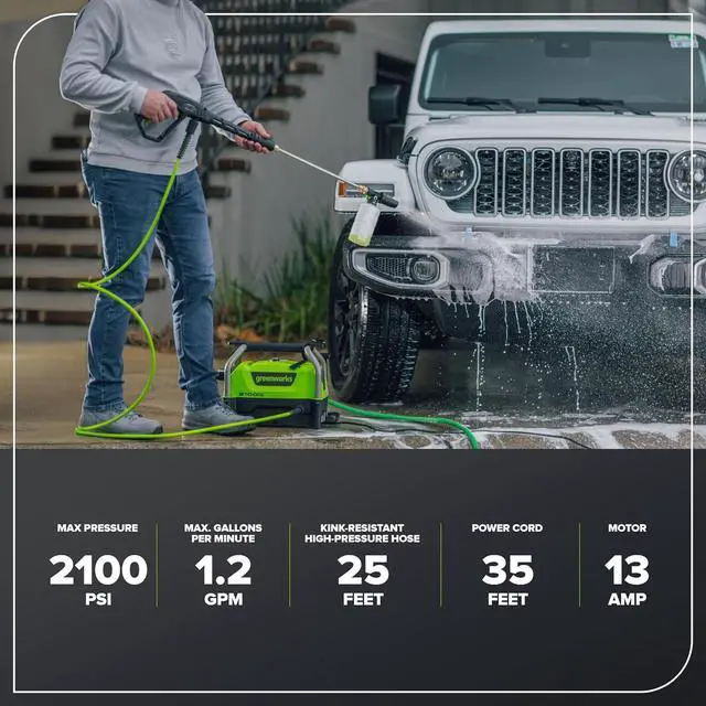 Power: Powerful residential electric pressure washer with 2100 MAX PSI at 1.2 GPM