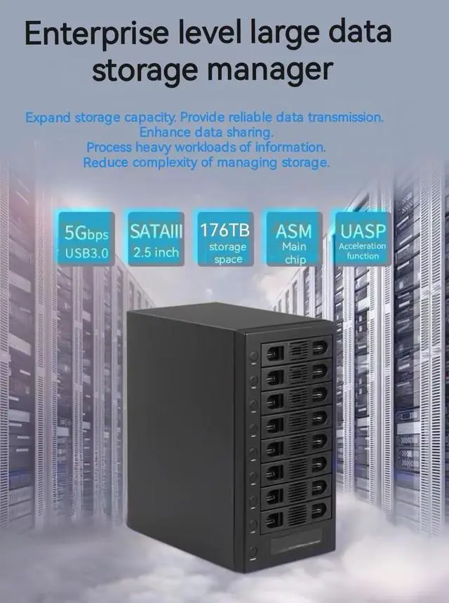 EXTERNAL USB 3.0 TO EIGHT 2.5 / 3.5 SATA3 HDD/SSD STEEL CASE, SUPPORT PM / NORMAL