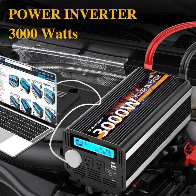 [Package Contents]-1x DC 12V to AC110V/120V 3000W power inverter, 1x user manual, 1 set of 10² cables (1x red, 1x black), 1x remote control, JARXIOKE inverter, you deserve it!