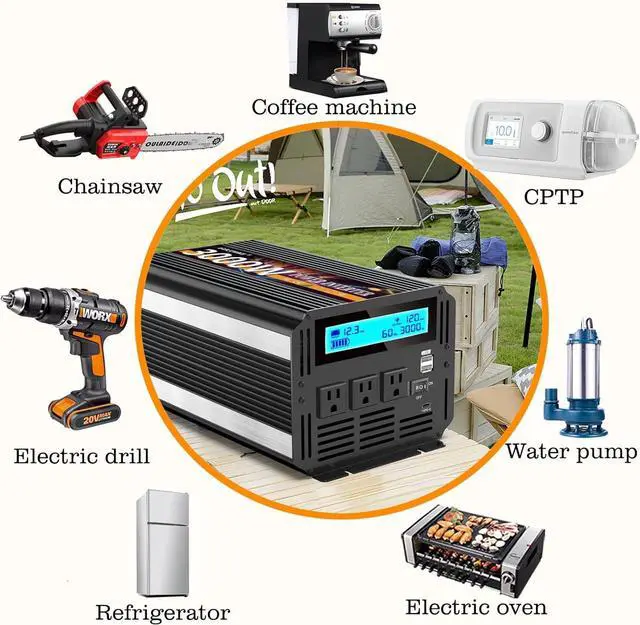 Powerful enough for your household appliances like coffee maker, microwave, heater, washing machine... on your road trip, RVs, Cars, Vessels and emergency.
