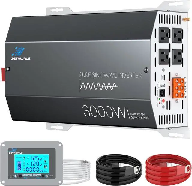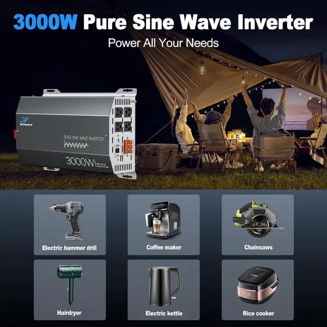 Batteries: The 3000W power inverter is equipped with 4 AC U. S. outlets, USB, and Type-C fast charging ports. Simply connect the 12V battery to the inverter with the power cable to access stable 110V/120V power. Its ideal for off-grid solar, trucks, homes, RVs, boats, travel, camping, and outdoor AC use.
