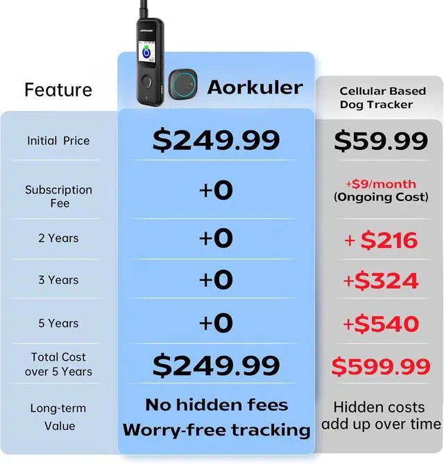 Simpler Operation Dog GPS Tracker: Aorkuler GPS dog tracker with louder sound and more eye-catching light alarms help you easily find your dog by tapping the button in situations with poor lighting or many obstacles (such as at night or in bushes). Aorkuler GPS pet tracker with unique and simple design allows you to say goodbye to complicated maps and cumbersome app settings.