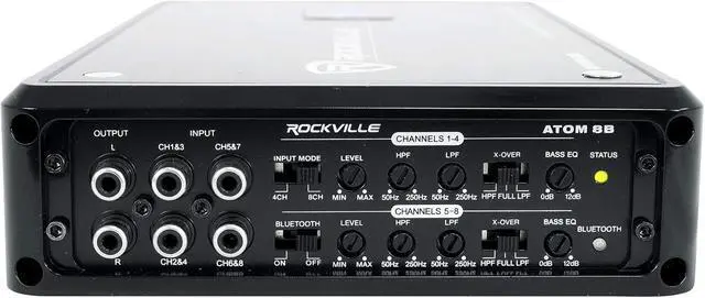 Stainless steel end caps, mounting hardware, and bottom plate make this amp truly resistant to the elements. 4CH / 8CH Input Mode Selector. Independent Crossover Controls for CH1-4 and CH5-8. Full Range / Low Pass / High Pass Configurable.