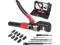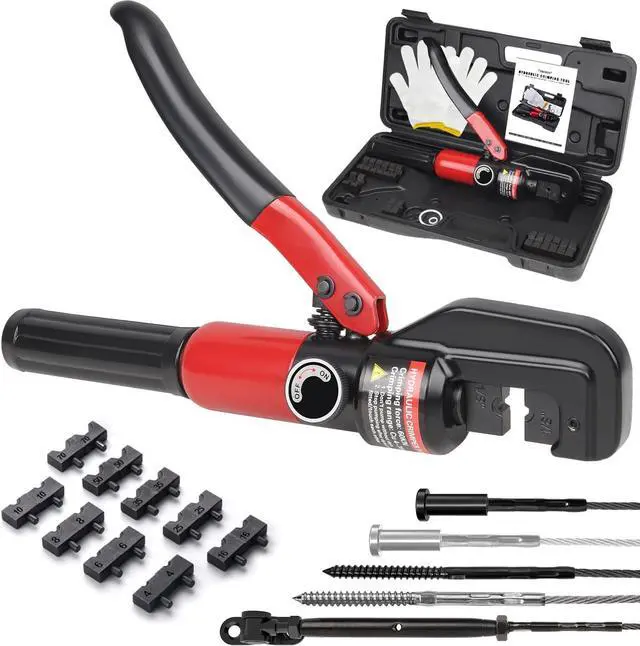 Includes 9 die sizes: #4, #6, #8, #10, #16, #25, #35, #50, #70, for crimping copper and aluminum wires from 12 AWG to 2/0 AWG, as well as stainless steel cable railing.