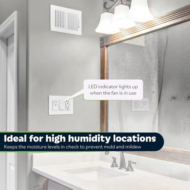 Sensor switch detects excess humidity and automatically turns the ventilation fan on. Perfect for high humidity locations such as the bathroom, laundry room, basement, etc.