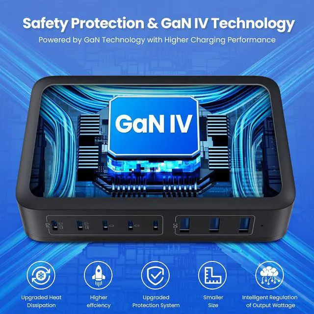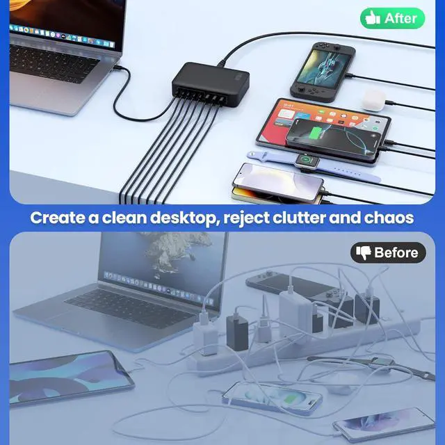 • 8-in-1 USB C Charging Station: The USB C Wall Charger features 5 USB C ports and 3 USB A ports for powering phones, tablets, headphones, smartwatches, game consoles and more. No need to wait, you can quickly charge up to 8 devices at the same time, and each port ligently distributes power to ensure you get optimal charging efficiency!