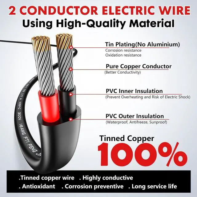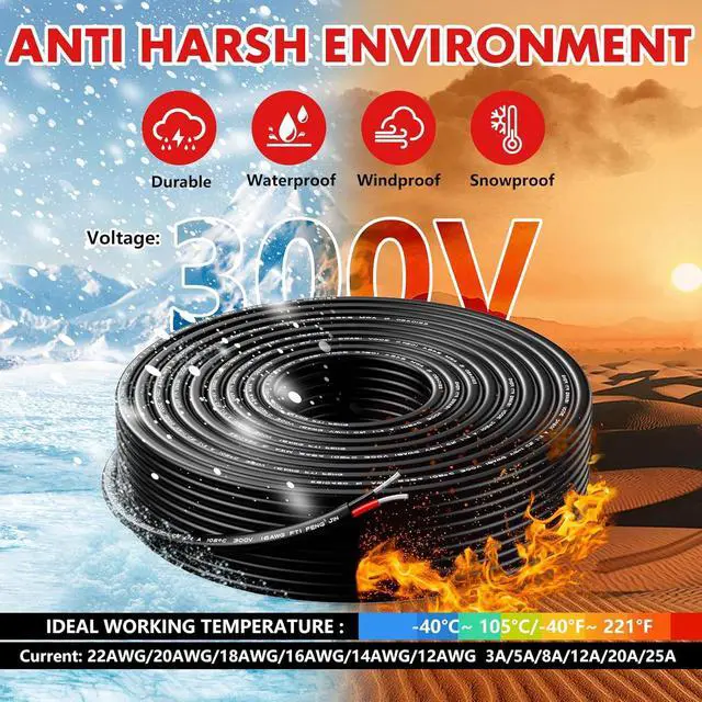 : Suitable for low voltage outdoor, lighting systems, automotive applications, household circuit systems and other daily environments, such as low voltage wire, speaker wire, LED light power cord, indoor light cable, automotive wire, landscape light wire, lamp wire, LED light wire, marine wire, electronic product internal cable, and so on.