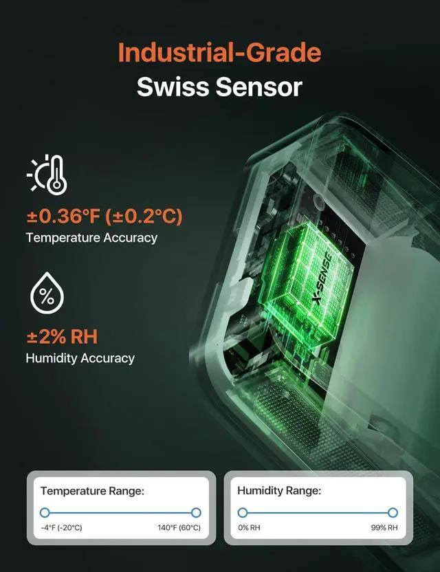 Helpful App: Use the app to remotely monitor temperature and humidity 24/7; see maximum, minimum, and average temperature/humidity over time in a graph, and switch between temperature scales (°F/°C); you can also let up to 12 users to monitor your indoor environment simultaneously
