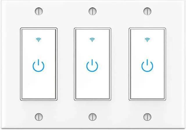 • NOTE: Single-pole application only. Neutral wire is required. Only works with 2.4 GHz Wi-Fi network. Package include: three separate switches with one 3-gang wall plate. The 3 gang wall plate is put in bottom of the packing box.