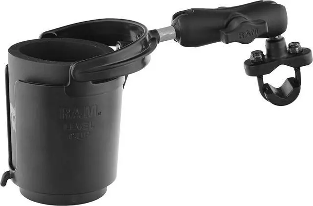 Self-leveling feature avoids spills and is perfect for motorcycles, ATVs, boats, and more; includes drink koozie