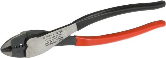 Thomas and Betts WT111M Hand Tool (Plier-Type) for installing A, B, C, PT non-insulated terminals and splices, includes wire cutter From the earliest days of electrification over 100 years ago, Thomas and Betts has been a leader in providing products for commercial and industrial construction, industrial plant maintenance, repair and operation, electrical utility distribution, communications and original equipment manufacturing. They offer one of the broadest product lines in the electrical industry, supplying over 70 percent of the items used in a typical electrical application. Wire Cutter Tip.