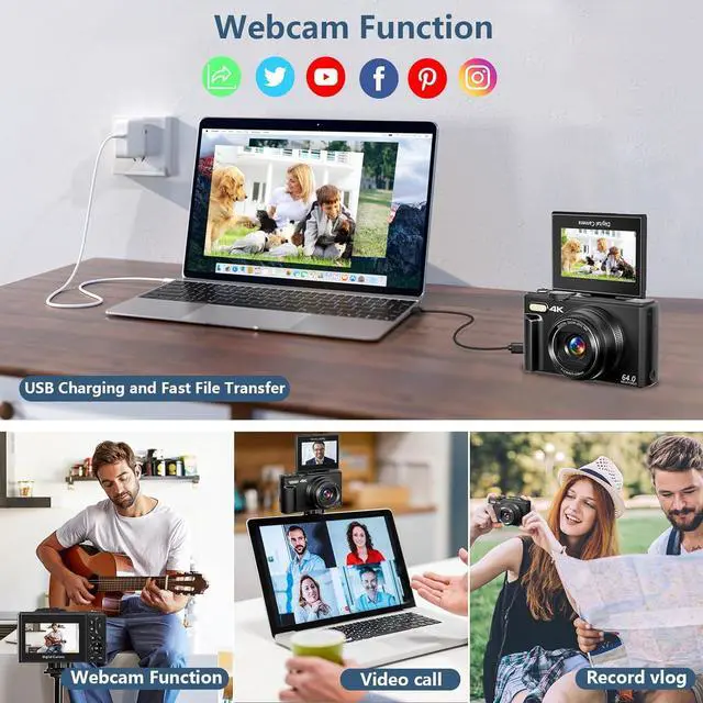 Multifunctional Point and Shoot Digital CamerasThe 4k digital camera for photography is multifunctional in that it has four photo modesContinuous shooting/Timed shooting/Auto photo mode/Normal photo modeand four video modesTime lapse recording/Loop recording/Slow motion recording/Normal video mode, along with a variety of filters. One camera can fulfill all your photography needs