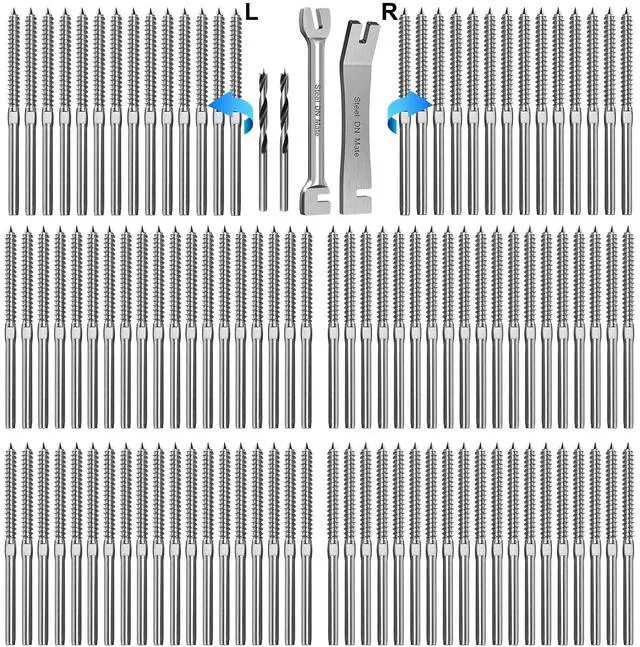 By the design of Right&left handed thread, of course it can be used to adjust the tension of attached cable, so the turnbuckles are not needed in the railing system. And this cable railing wont be easily unfixed or destroyeded. The lag screws could be drilled into wood to adjust the tightness without extra turnbuckle or tensioner. Deck and Stair Cable railing system is not only simple but also won't block your view.