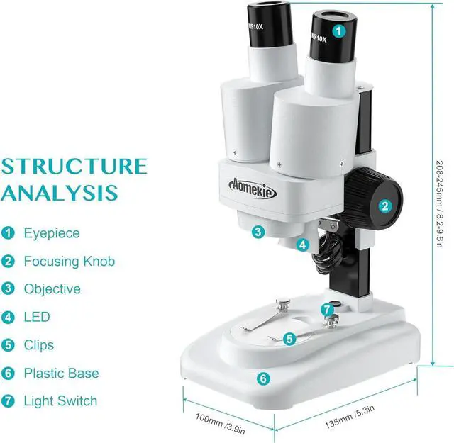 A fixed vertical inclination and rotatable focus knob makes focusing more stable and smooth. This elementary microscope is perfect gift for kids to stimulate their interest and potential in science.