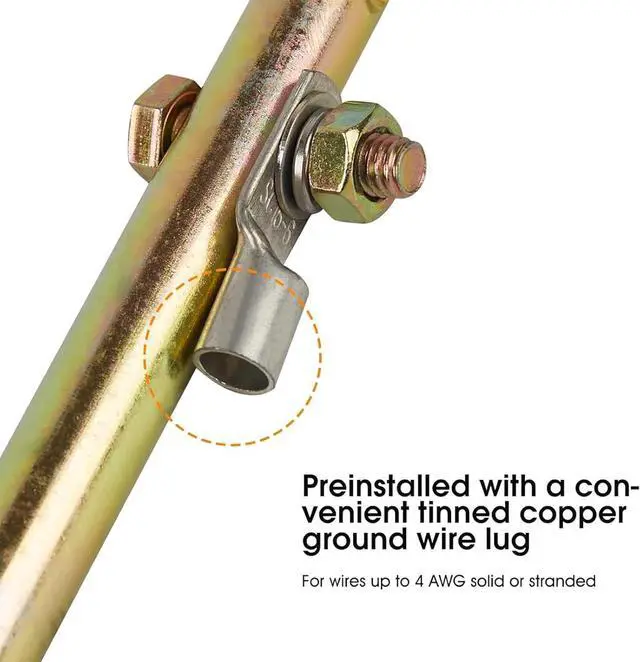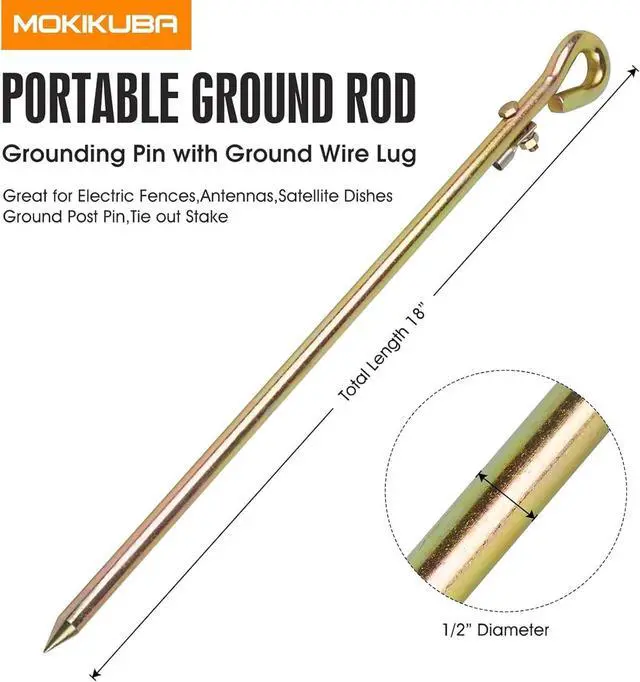 MOKIKUBA- Portable Ground Rod - Color Zinc Plated Ground Pin with Ground Wire Lug| Great for Electric Fences, Antennas, Satellite Dishes, Ground Post Pin, Tie out Stake