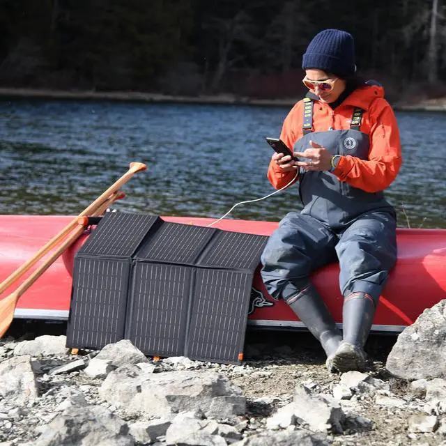 Ultra-Portable Design Weighing 6.4 lbs, the 6-fold panel unfolds to 33.8 × 28.1 × 0.2 inches for solar harvesting and folds to laptop-sized dimensions ( 13.8 × 9.1 × 2.2 inches) with a carry handle. Ideal for camping, road trips, or emergency home use.