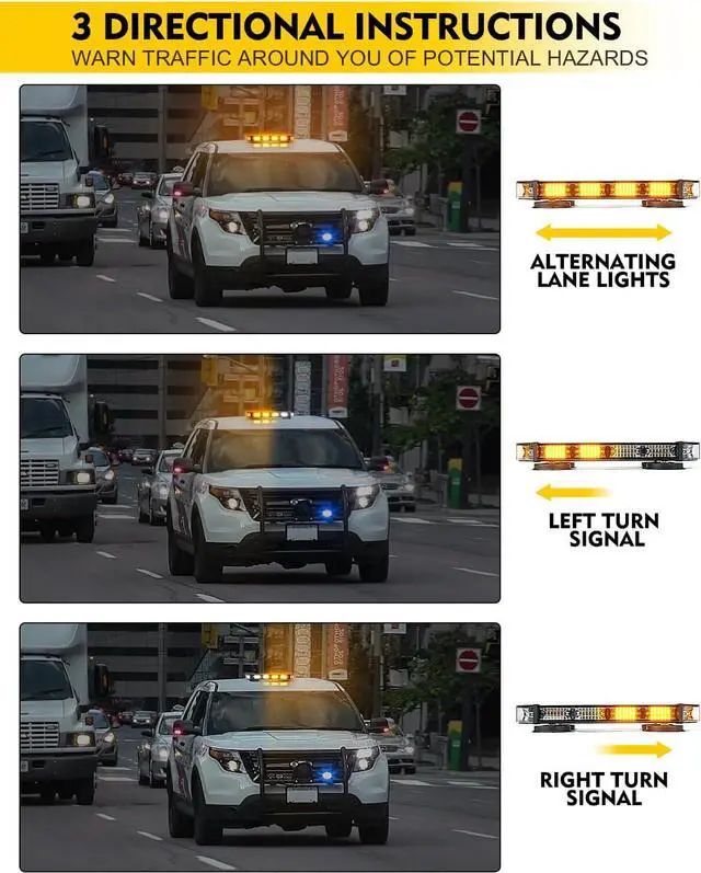 21 FLASHING STROBE PATTERNS - Our LED safety warning light bar offers multiple flashing patterns, including 3 traffic modes, allowing you to choose the most suitable one for your specific needs. Whether you need a steady light, fast strobes, alternating patterns, or synchronized flashes, this hazard caution light bar has you covered. The mode display control panel makes it effortless to switch between modes, and provides versatility, making it ideal for various emergency situations.