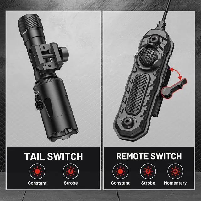 DURABLE- Anodized aluminum construction, the rail mount gun flashlight reaches IPX4 waterproof and 1 meter impact resistance.