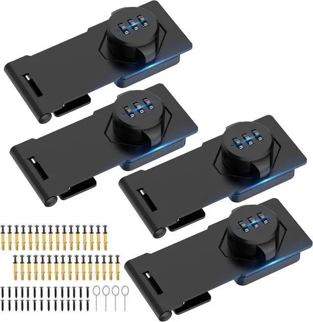 Household Cabinet Password Hasp Locks, Cabinet Locks with Combination, Door Security Slide Latch Lock for Small Doors, Cabinets, Barn Door, Bathroom, Outdoor, Garden (4 Pack Black)